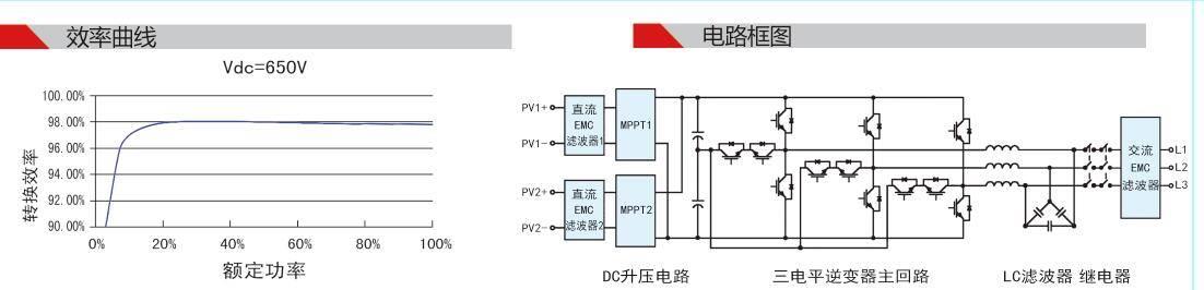 无变压器隔离度,*大转换效率高达98.5%,欧洲转换效率高达98%